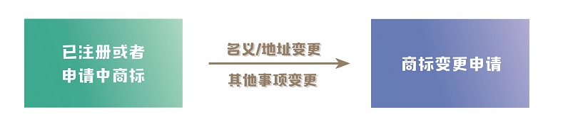 商標(biāo)核準(zhǔn)注冊(cè)后,商標(biāo)注冊(cè)人的名義、地址或其他注冊(cè)事項(xiàng)發(fā)生變更的,應(yīng)當(dāng)向商標(biāo)局申請(qǐng)辦理相應(yīng)變更手續(xù)。變更商標(biāo)注冊(cè)人名義或地址的,商標(biāo)注冊(cè)人應(yīng)將其全部注冊(cè)商標(biāo)一并變更。商標(biāo)變更可以是已經(jīng)獲準(zhǔn)注冊(cè)的商標(biāo),也可以是在申請(qǐng)中的商標(biāo)。