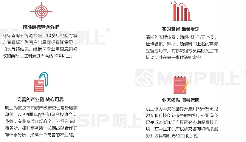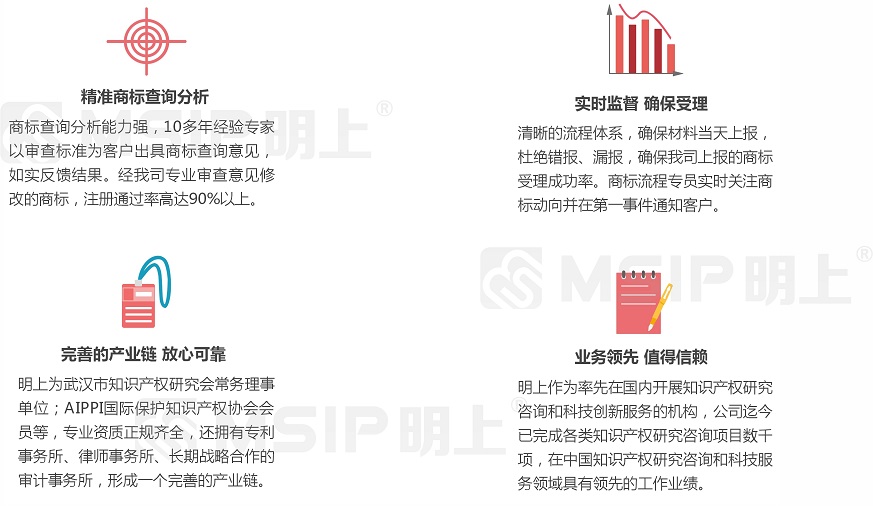 1、專(zhuān)業(yè)知識(shí)產(chǎn)權(quán)背景 明上利用自己專(zhuān)業(yè)化的知識(shí)產(chǎn)權(quán)背景,為企業(yè)知識(shí)產(chǎn)權(quán)領(lǐng)域業(yè)務(wù)提供專(zhuān)業(yè)解決、代理申報(bào)服務(wù)并完善申報(bào)工作中關(guān)于企業(yè)自主知識(shí)產(chǎn)權(quán)的專(zhuān)業(yè)問(wèn)題。